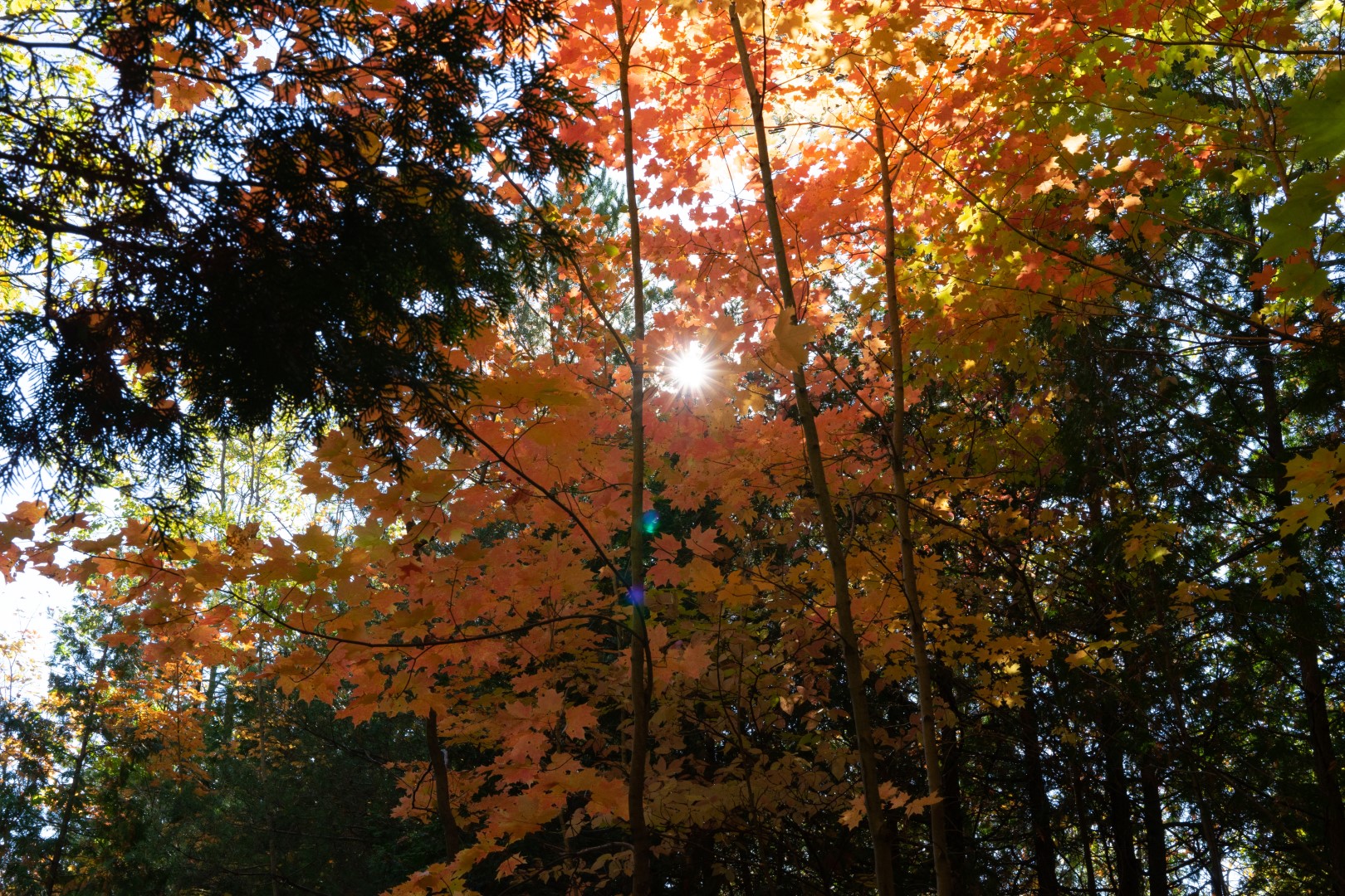 Starburst shoot through a maple tree at Rouge Urban National Park.