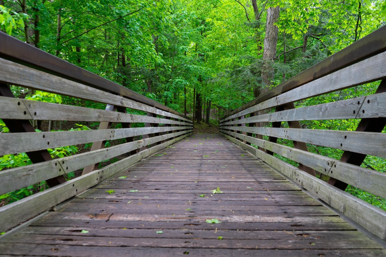 This wood bridge surrounded by the forest was captured at Edwards Gardens just after a rain, revealing mysterious feeling.